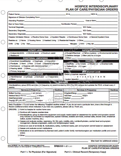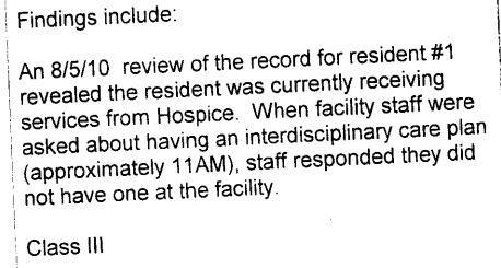 Review all your hospice resident’s and make sure you can locate their Interdisciplinary Care Plan. You can often find it in the resident’s hospice chart. You can ask the hospice staff to provide you a copy. Below is an example of a plan.