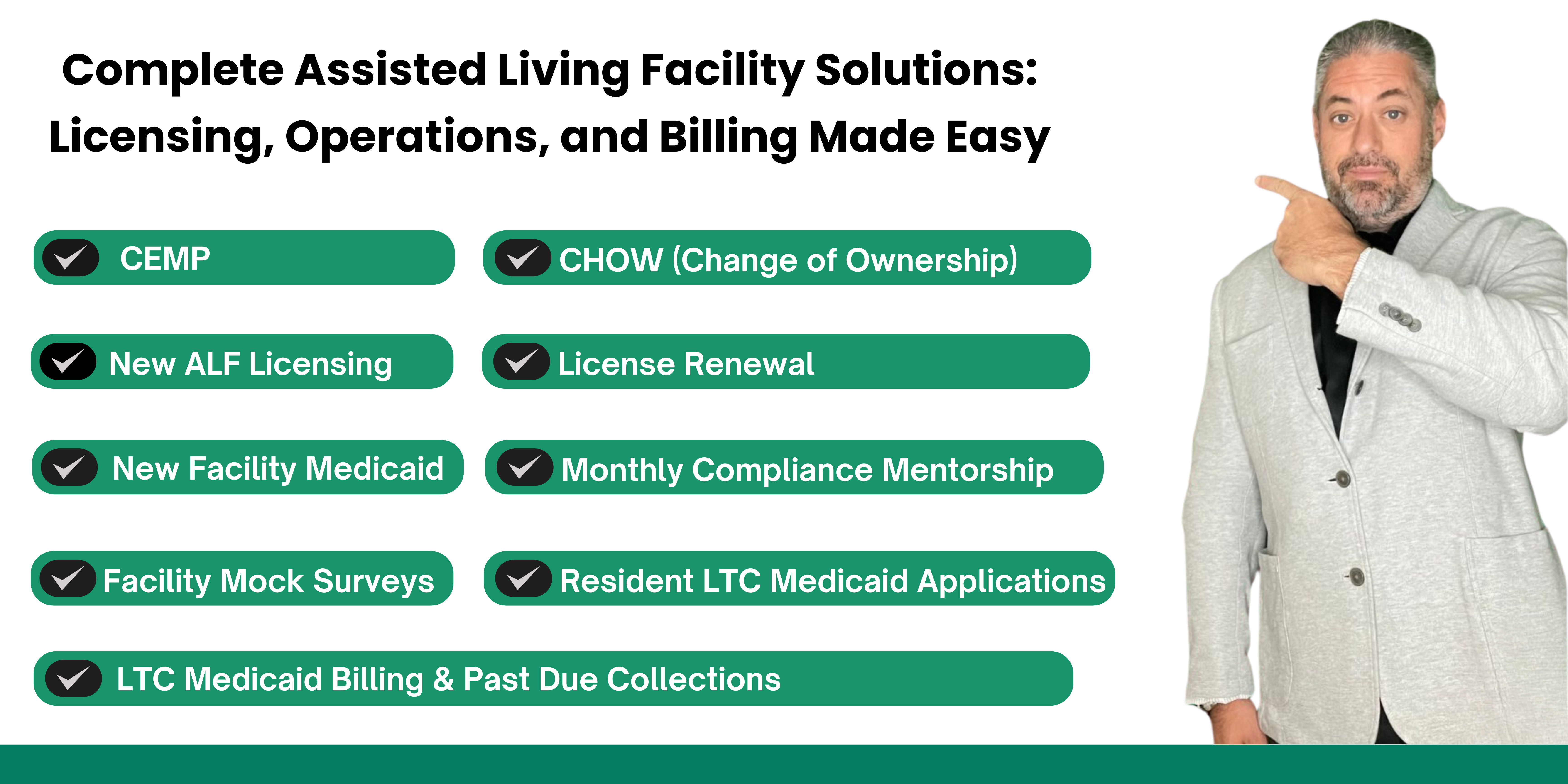 Whether you’re just starting out, already running, or looking to grow your assisted living facility, ALF Boss is here to guide and support you every step of the way. At ALF Boss, we don’t just give advice—we provide practical, hands-on solutions based on decades of real-world experience in the industry. Our goal is to make your facility more efficient, more compliant, and more successful, so you can focus on what matters most: providing exceptional care for your residents. Take the first step toward success today and partner with a team that truly understands your needs.